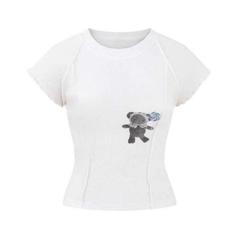 Gray Bear Print T-Shirt White